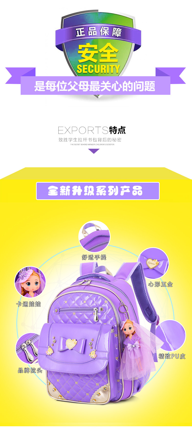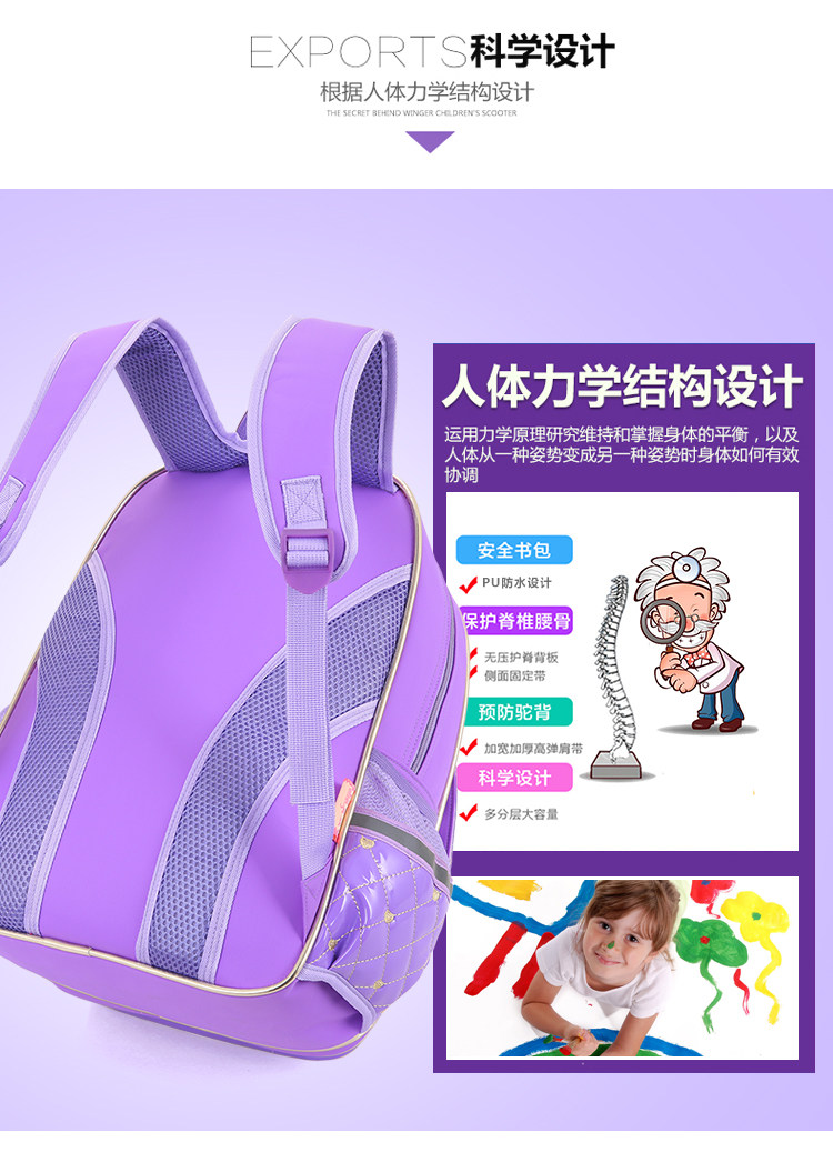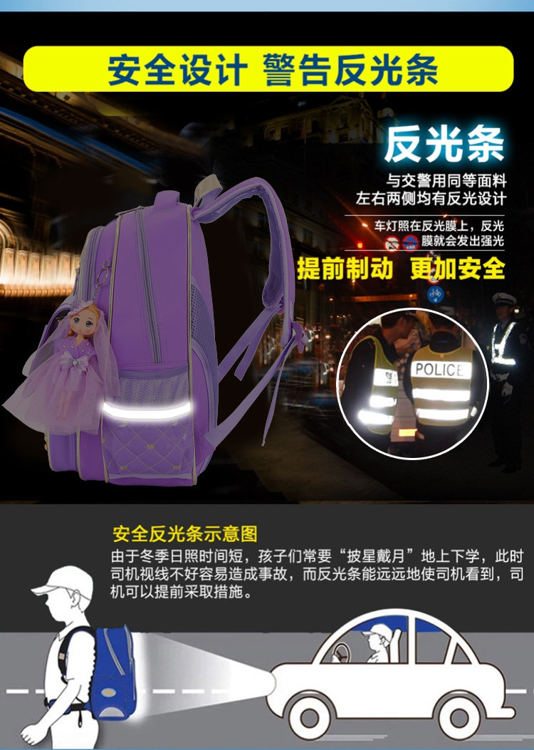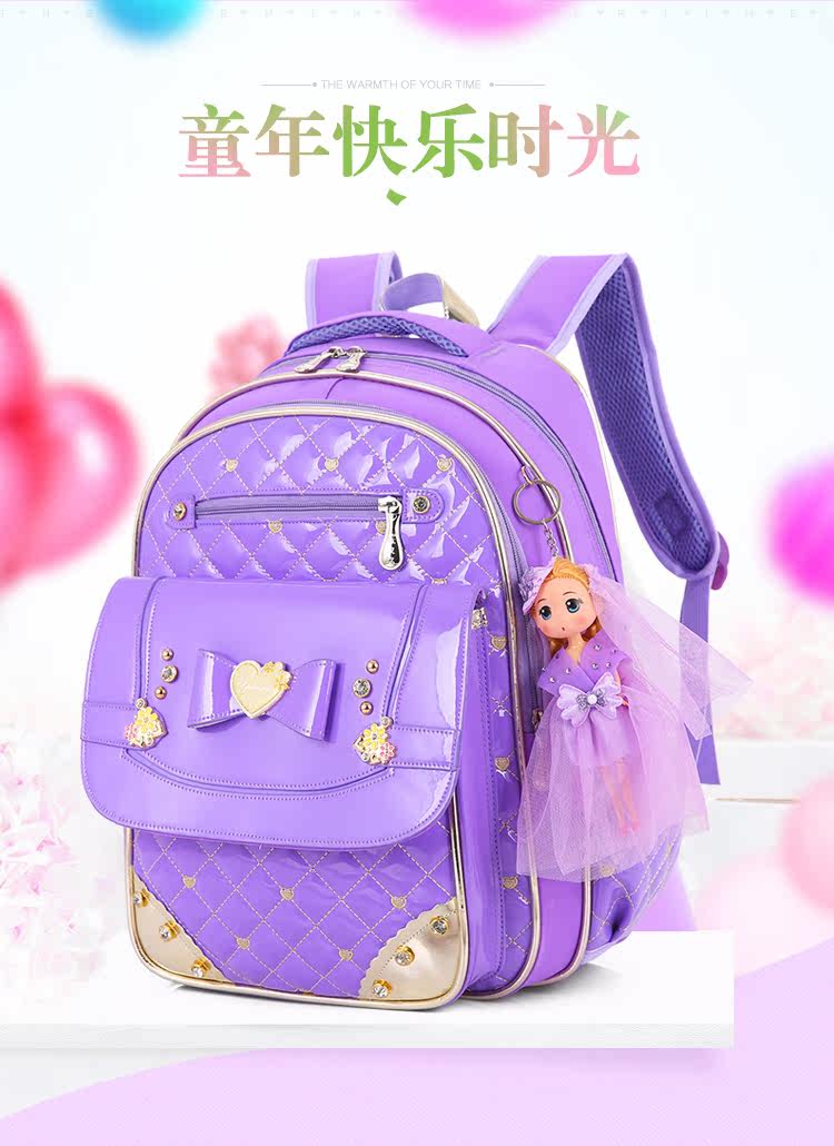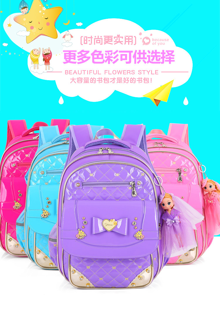 小学生开学书包公主1-2-3-6年级女生减负双肩儿童书包防水PU背包