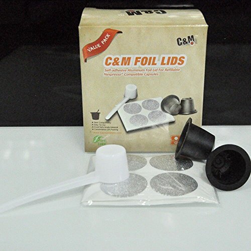 IreVoor 1000pcs Foils for Nespresso Brewers- New Version Self Adhesive Aluminium Lid for Refilling All Nespresso Capsule and Nespresso Compatible Capsules +10pcs Empty Capsule (Black)