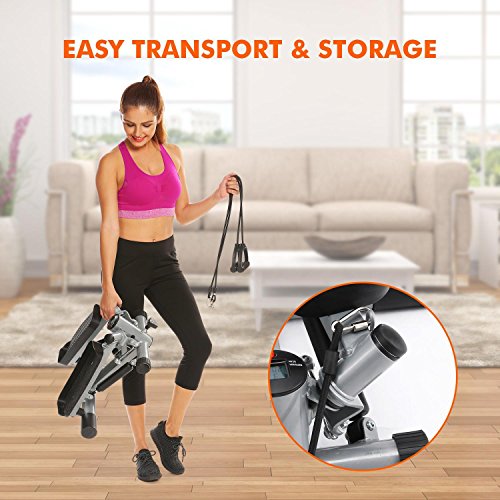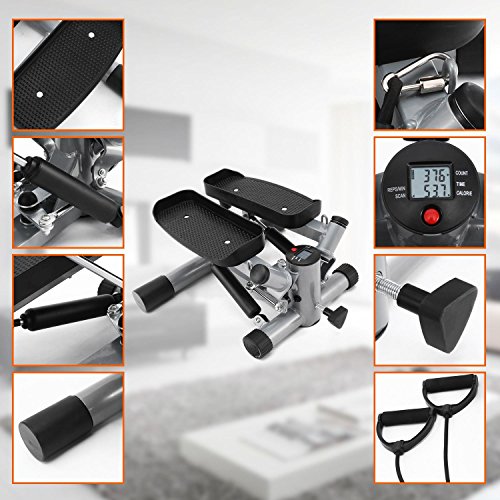 Product Description Mini Stepper 220lbs Mini Stepper with Resistance Bands Stepper Twister Stepper Machine Introduction: This is a superior portable mini exercise equipment. This stepper is one of the most popular machines that enable you to work out at home with so little space.The Fitness Twister Stepper Offers A Full Cardio Workout, Strengthening YourMuscle. The Air Climber Can Help You Get A Shapely And Toned Body. Its Compact Size Is Super Convenient For You to TakeExercise At Home Or In Your Office. You Can Take It to Anywhere Youlike. The Stepper Is Ergonomically Designed To Minimize The Damage To The Joints,Suitable For People Of All Ages. Digital Display Helps You Read The Rep S/Min,Count, Time And Calories, Which Makes Your Exercise More Reasonable AndEffective. Cautions before exercise: 1. Please take warm-up exercise before using the equipment. And be aware of your physical ability and condition. 2. Before use, please carefully examine the equipment make sure it is in good condition. If any defect, adjust and repair it. Ensure to wear proper outfit while exercising to avoid any potential accidents Features Durableand Solid Steel Frame Light Weight And Portable Usable For Both Home Workout And Gym ComfortableWide Anti-Slip Pedals Which Ensures Safety Effectively Exercise The Ankle ,Knee, Waist And Arms Provides A Low-Impact Aerobic Work Out Small And Portable, Easy To Store Solid Steel Construction Comes With 2 Pulling Bands Load Capacity: 220 LBS Material: Steel, Plastic Size: 53 x 50 x 24cm/20.9 x 19.7 x 9.4inch Package Include: 1 X Aerobic ExerciseStep Machine 0
