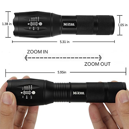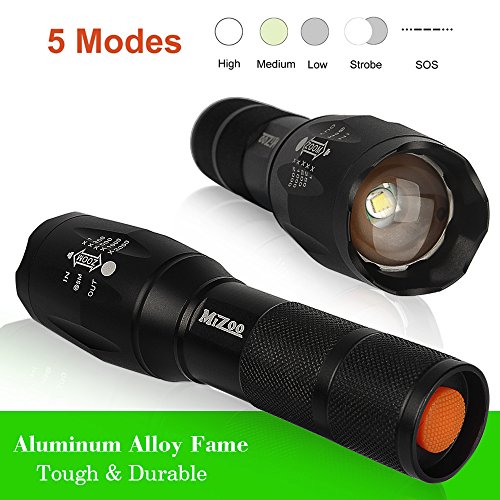 MIZOO LED Flashlight Torch Adjustable Focus Zoomable Mini Generic , Super Bright - Sturdy and Durable Aluminium Structures - Water Resistant Lighting Lamp Torch For Hiking, Camping, Emergency