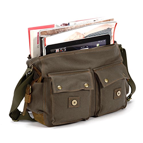 -. Brand : Anladia -. Feature : Classical Military Canvas Mens Boys Messenger Shoulder Bag for you! / Super Hot Sale Vintage Canvas Mens Boys Shoulder Bag is On Sale!Perfect bag when you go to school and shopping with it! / The inner big tier comes with zip, saftly keep your item! / Outer two pockets is convenient for you, you can put your ipod in it and take it everywhere with you! / Size Detail:Body:32 x 9 x 35cm/Strap: 120 x 4cm -. Label : Anladia -. Manufacturer : Anladia -. MPN : BG904-p -. NumberOfItems : 1 -. PackageQuantity : 1 -. PartNumber : BG904-p -. ProductGroup : Apparel -. ProductTypeName : APPAREL -. Publisher : Anladia -. Studio : Anladia -. Title : Mens Vintage Canvas Leather Messenger Bag Satchel Military Shoulder School Bag