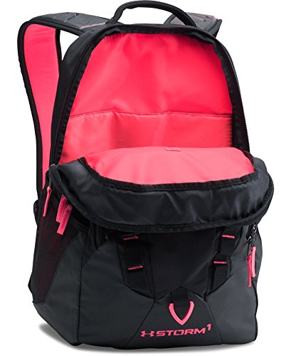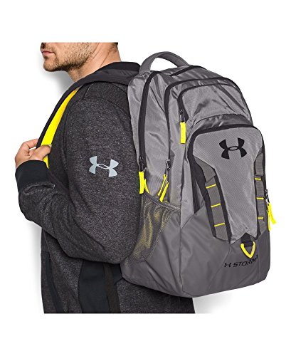 -. Feature : UA Storm Technology delivers an element-battling, highly water-resistant finish / Tough, abrasion-resistant bottom panel / Soft lined laptop sleeve-holds up to 15 inch laptop / Water-repellent front valuables pocket to keep your stuff safe / Adjustable, padded, HeatGear shoulder straps for total comfort / Pockets: 1 interior slip, 4 exterior