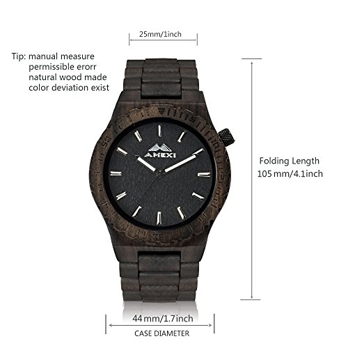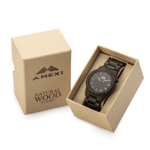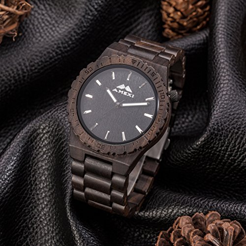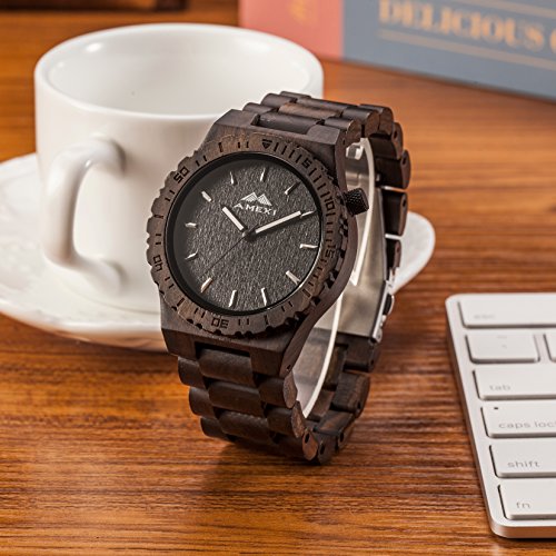 Amexi 검정의 자연 건강 샌들우드(Sandalwood) 의 색과 손수 만든 목제의 남성용의 손목시계
