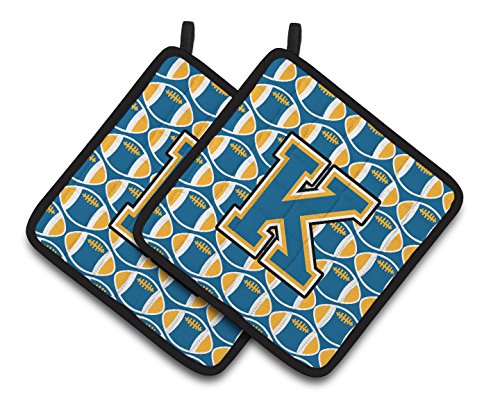 Caroline's Treasures Letter K Football Blue & Gold Pair of Pot Holders CJ1077-KPTHD, 7.5HX7.5W, Multicolor
