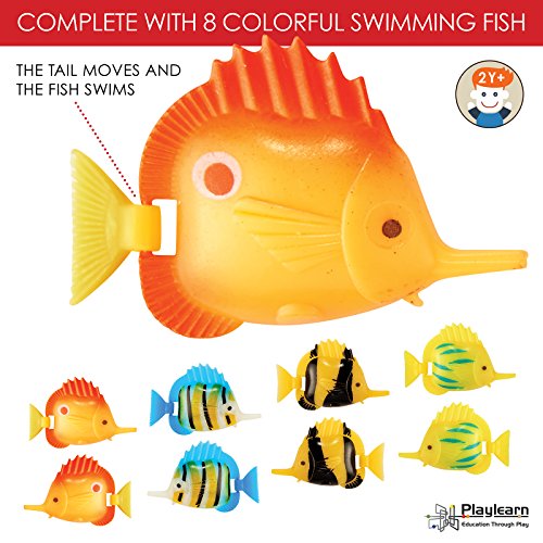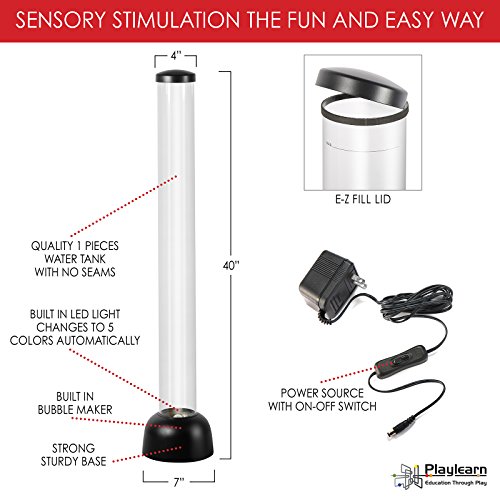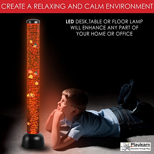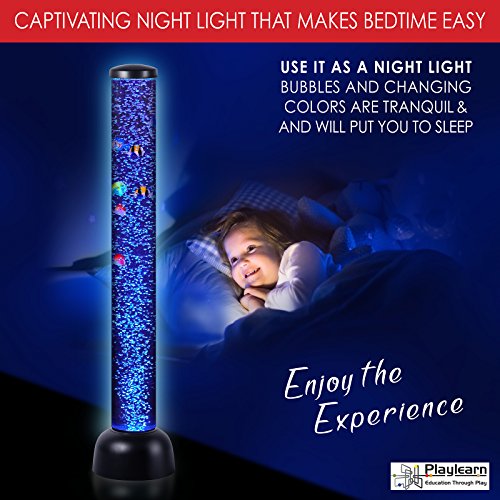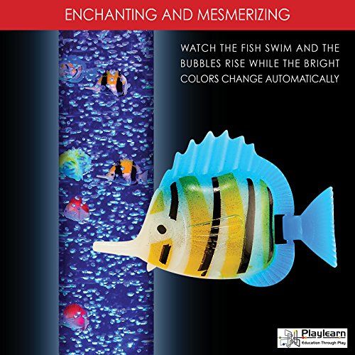 Sensory LED Bubble Tube - 3 Foot "Tank" With 8 Fake Fish - Floor Lamp with 7 Changing Light Colors - Stimulating Home and Office Décor - by Playlearn