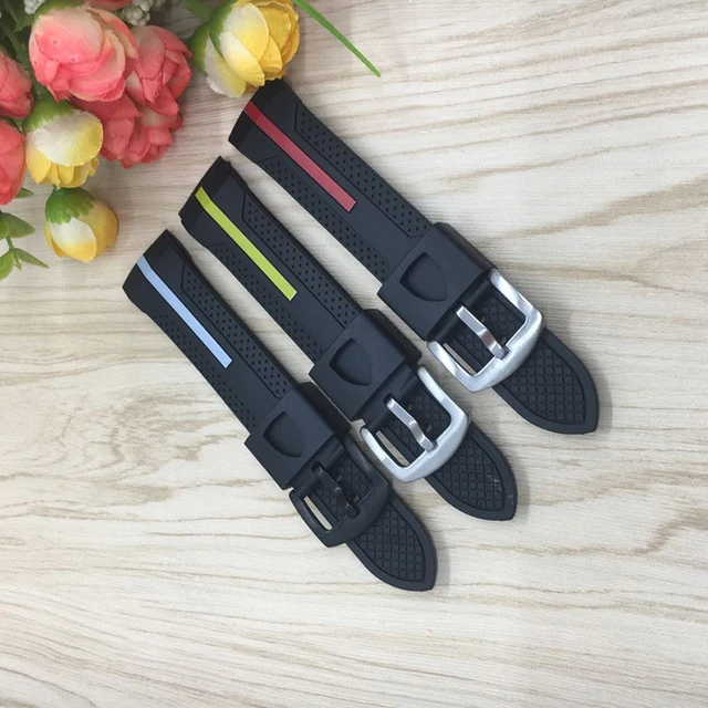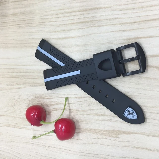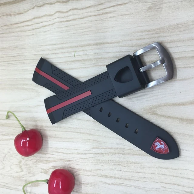 | [해외]22 미리메터 블랙 레드 실리콘 고무 시계 밴드 시계 스트랩 방수 시계 줄, 두껍게 316L 스틸 버클 무료 배송 |