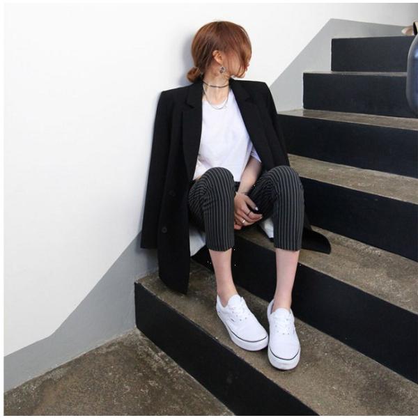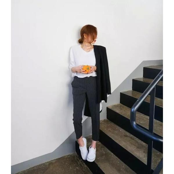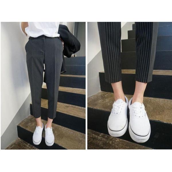 ストライプ九分丈スラックス パンツ レディース シンプル カジュアル フォーマル 2017 新作 ファッションシンプルコーデに合わせてメンズライクな着こなしに♪美脚効果抜群のストライプデザインでスタイルアップ間違いなし!コーデネートを問わず合わせられるベーシックなアイテムです。【カラー】グレー・ブラック【サイズ】[S]丈82/ウエスト71/ヒップ86/太もも周り46(cm)[M]丈83/ウエスト75/ヒップ90/太もも周り48(cm)[L]丈84/ウエスト79/ヒップ94/太もも周り50(cm)※製品により多少の誤差が生じる場合がございます。【素材】綿、ポリエステル【ご使用上の注意】着用に問題のない製法のほつれ、商品の性格上、開封された商品・一度でも着用されました商品の返品・交換は一切お受け致しません。イメージと違う、サイズが合わない等の理由での返品は一切受け付けておりません。購入後のサイズ交換は対応しておりません。生産終了後すぐ発送しているため匂いがある場合がございます。ご了承ください。【生産国】made in china※商品はご注文を頂いてから2週間前後の到着となります。