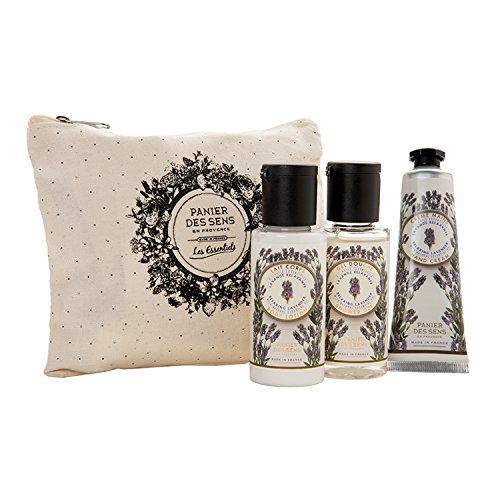 - Three item travel gift set that includes one 1.7-ounce Panier Des Sens Shower Gel, one 1.7 ounce Body Lotion and one 1-ounce Hand Cream with natural essential oils from Provence in "Lavender" scent.