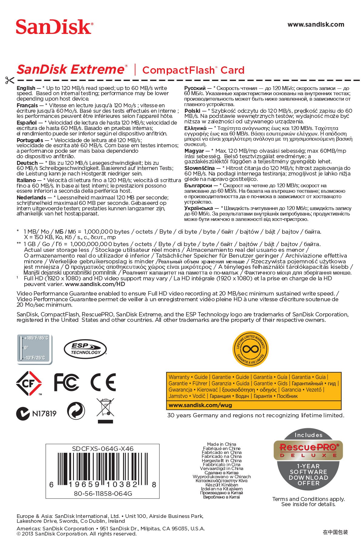 B00EZE6V50 SanDisk Extreme 64GB Compact Flash Memory Card