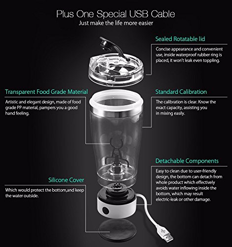 Specifications: Capacity:500ml Size:8*20cm Package Includes: 1 x Digoo DG-VX1S USB Rechargeable Mixer Auto Electric Blend Shaker Bottle 1 x USB Cable (Come With Original Gift Box Packaging)