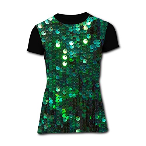 -. Title : T-shirts Tee Shirt for Women Tops Costume Green Scale Bling Paillette