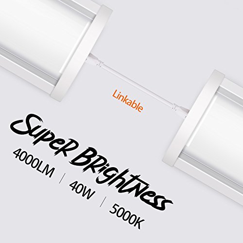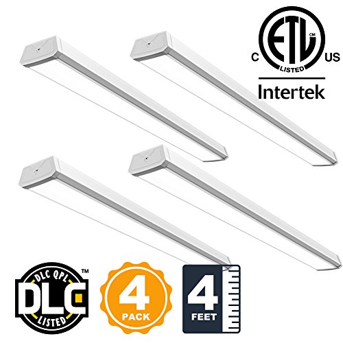 40W Linkable 4FT LED Wraparound Flushmount Shop Light 4000Lumens 5000K Super Bright Utility Ceiling Indoor Light for Commercial Offices Garages Workbench Hallways Closets pack of 4