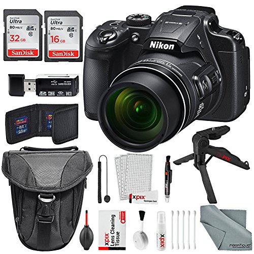 Includes: Nikon Coolpix B700 digital camera + 6.5 inch table top tripod + wrist grip strap + 32 & 16 GB SDHC + SD card reader/writer + SD card wallet + Xpix deluxe cleaning kit