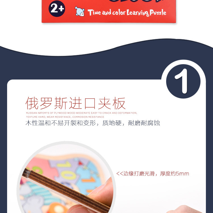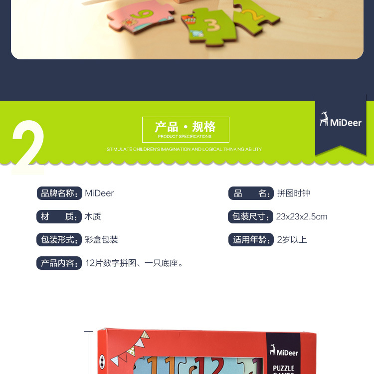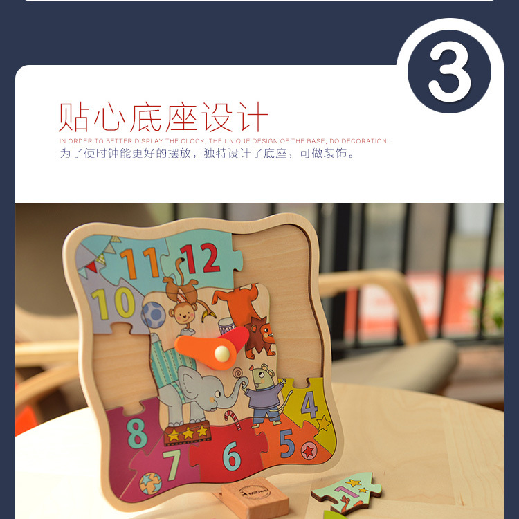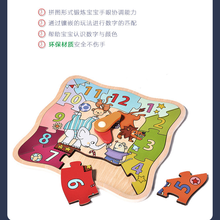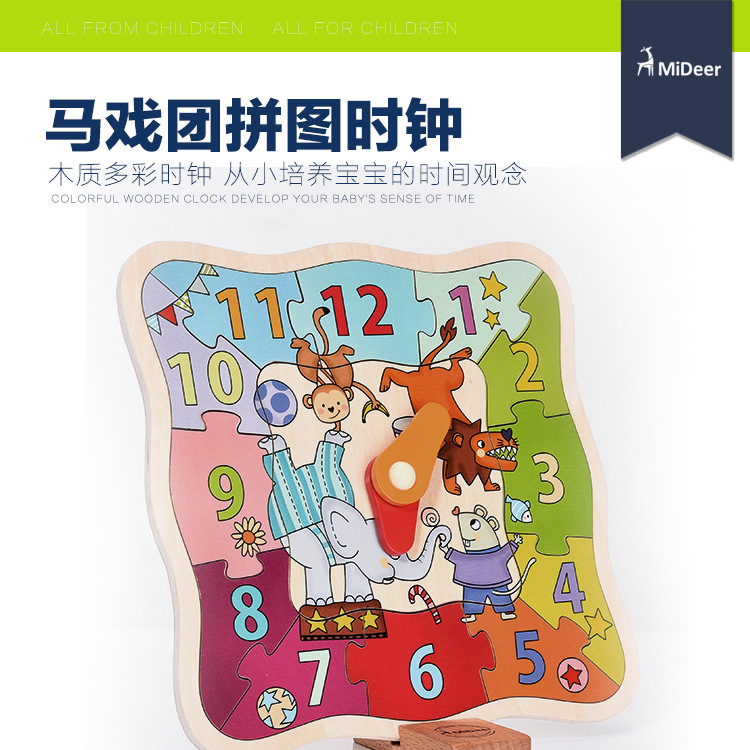 MiDeer 早教认知拼图时钟 颜色数字认知 认识时间 木质时钟拼板