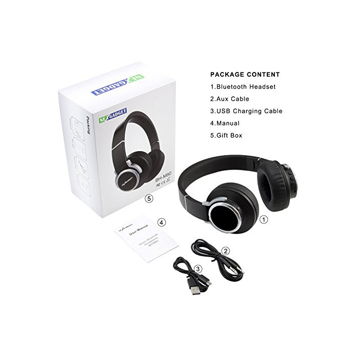 NexGadget wireless 헤드폰 Bluetooth헤드 세트 접는식 마이크 부착 밀폐형 헤드폰 노이즈갼세린구 블랙