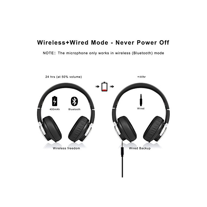 【wireless와 유선 양용 가능 】Bluetooth기능에 의해wireless 방식을 채용에 의해음성 신호 전송을 합니다.Bluetooth를 사용할 수 없는 환경이나 전연못이 소모한 경우,3.5mm오디오 끼워넣어 구와 AUX오디오 케이블이 붙고 있고, 유선 헤드폰으로서도 사용으로 옵니다.내장400mAh충전식 배터리는,최대24시간의 플레이 타임과 무선 음악의 400시간의 스텐바이를 제공합니다.