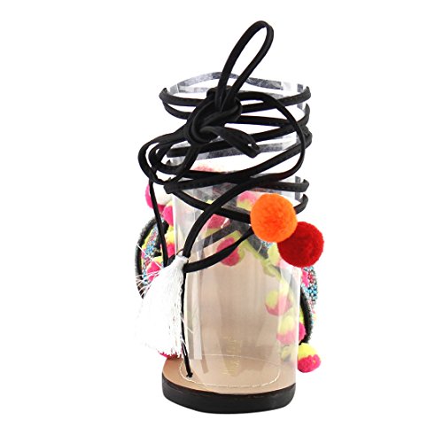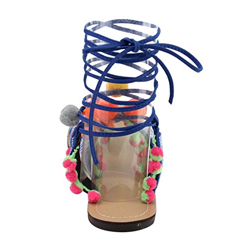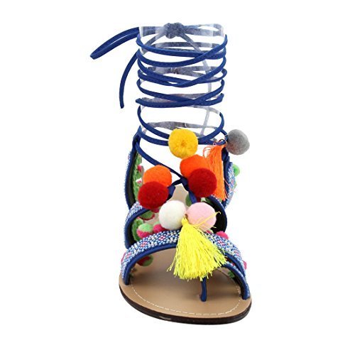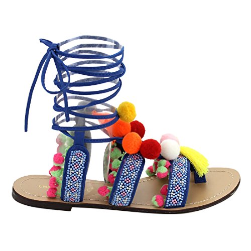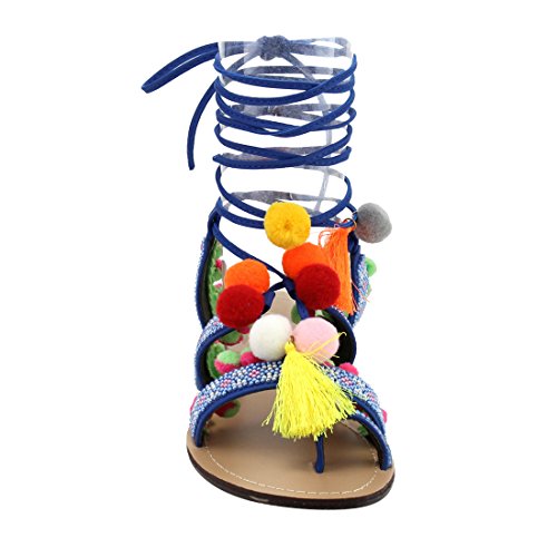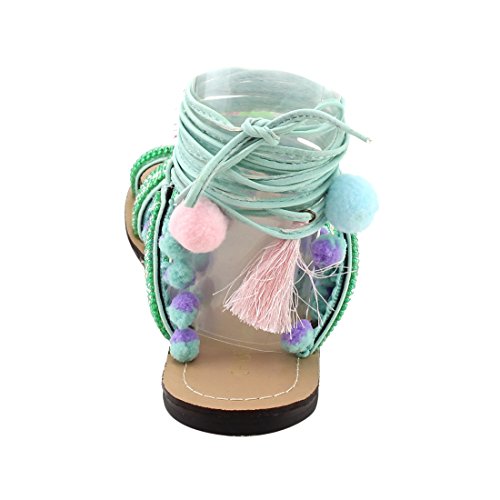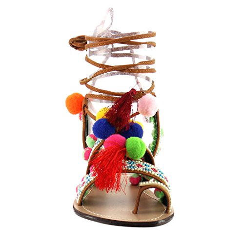 Chase Chloe EF71 Women's Leg Wrap Tassel Pom-Pom Beads Flat Sandals