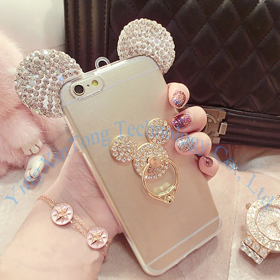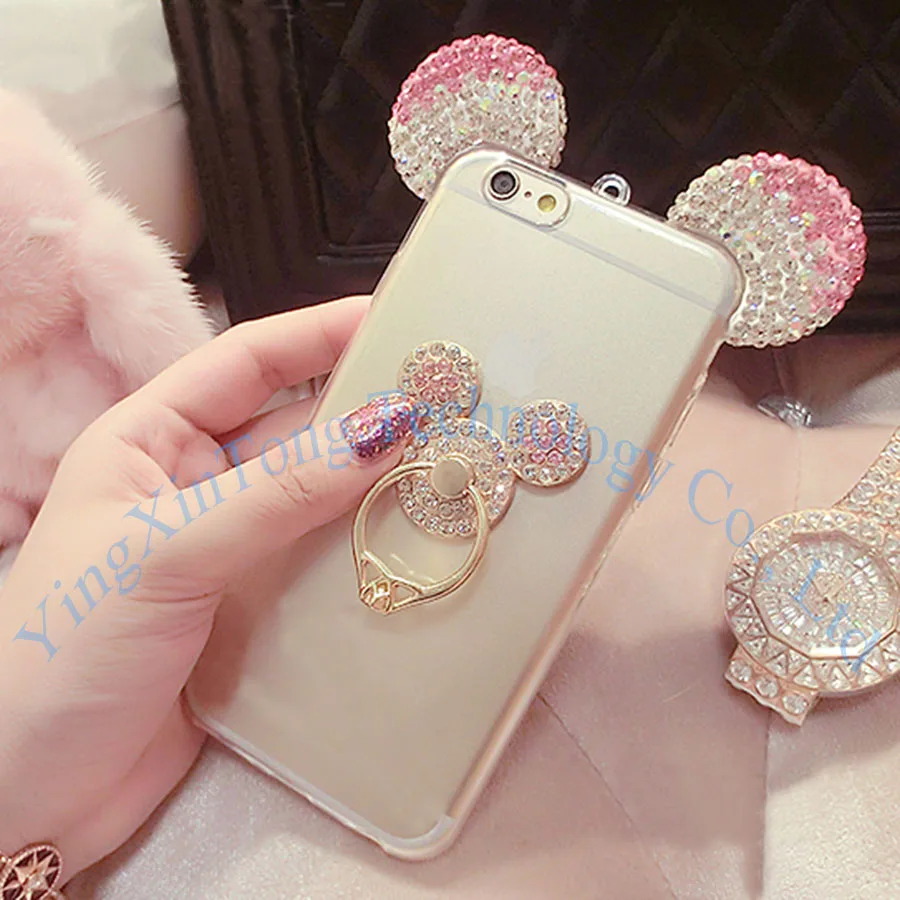 Features:Bling Glitter Diamond Metal Ring Holder Stand Case TPU Back Cover