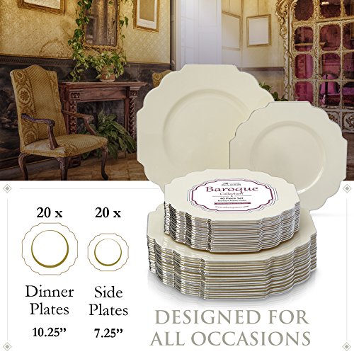 (Silver Spoons)/Kitchen Dining/Tableware/DIRECT FROM USA/Party Disposable 40 pc Dinnerware Set | 20 Dinner Plates and 20 Salad or Dessert Plates | Heavy...