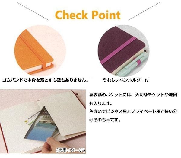 上質紙を使用し、上品な質感を持っております。ゴムバンド、ペンホルダー、しおり付き。横罫です。 |