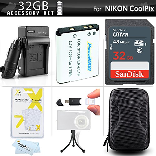 This Kit Includes Some Of The Essential Accessories You Need To Take Full Advantage Of Your New Nikon Coolpix S6400, S3100, S4100, S100, S4300, S3300, S5200, S6500, S3200, S4200, S3500, S6800, S5300, S3600, S3700, S2900, S33, S7000, S6900, S2800, W100, A300 Digital Camera Includes 32GB High Speed SD Memory Card + Replacement Extended (1000Mah) EN-EL19 Battery + AC/DC Charger + Case + More