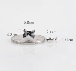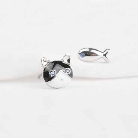 - Title : Sterling Silver Cute Cat and Fish Stud Earrings