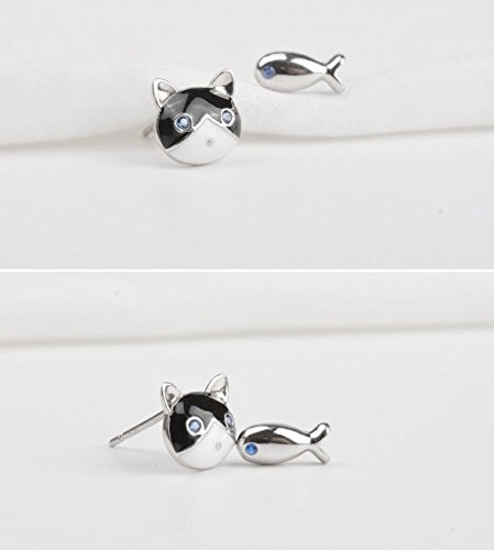 - Feature : Silver Cute Cat and Fish Stud Earrings / Lovely ear stud for ladies girls personal decoration / Packed well ,ship fast and high quality,best gift for family,friends,lovers& yourself / Note:Because the pure silver earrings will oxidize when take out of gift box,it will turn yellow or black,if they clean it with cloth or toothpaste,it will become white / Our packing you can find AIEDE inside the logo,If not, prove you buy fakes, please complaint amazon
