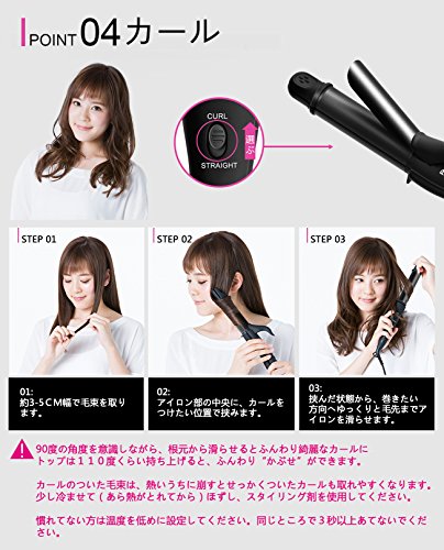 「스트레이트 카루 양용」:스트레이트도 카루도 즐길 수 있는 2WAY타입고데기입니다.원터치로 간단하게 바뀌는 때문에,스타일링으로 옵니다.언제라도 어디에서라도 자유롭게 스타일링으로 옵니다.