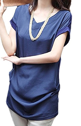 -. Title : (ミィフォー) mee four レディース カットソー Tシャツ トップス 半袖 シンプル ボタン付き バックシャン 無地 ゆったり 大きめ