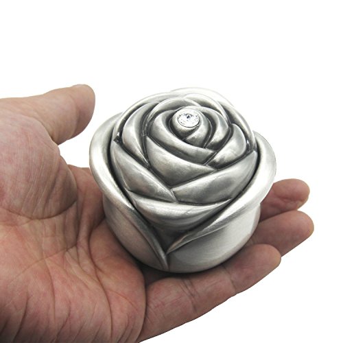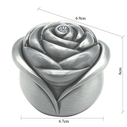AVESON Vintage Rose Flower Style Antique Women Trinket Jewelry Gift Box Necklace Earrings Ring Storage Case, Sliver, Large