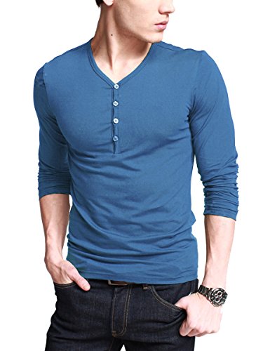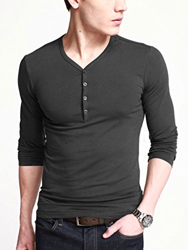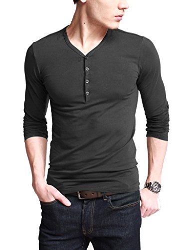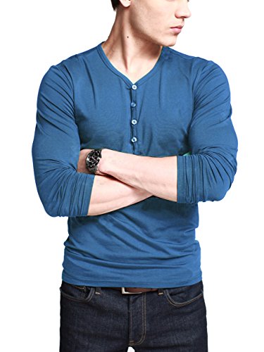 -. Title : iLoveSIA Mens Henley T-shirts Long Sleeve With Button Placket