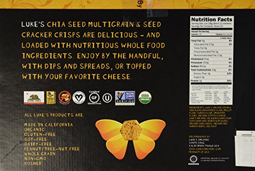 -. Feature : Luke's Multigrain & Seed Crackers: Chia Seed 20 oz / USDA Certified Organic, 18 grams Whole Grain / Certified Gluten Free / Non-GMO Verified / Certified Vegan; Contains No Nuts