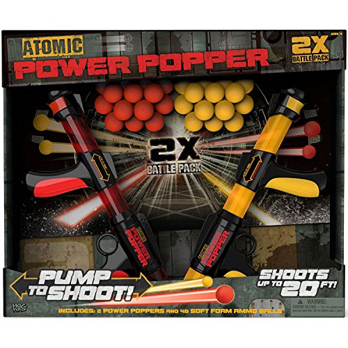 -. Binding : Toy -. Brand : Hog Wild -. EAN : 0605168540131 -. Feature : Indoor/outdoor play, Shoots up to 20 feet. / Includes two Atomic Power Poppers and 48 soft foam balls / Soft and safe foam balls. Fast and easy re-loads-slide tube opening over ball and press ball in. / No batteries or assembly required / Small Parts Warning-Not for children under 3 years old -. IsAdultProduct : 0 -. Label : Hog Wild -. Manufacturer : Hog Wild -. ProductGroup : Toy -. ProductTypeName : TOYS_AND_GAMES -. Publisher : Hog Wild -. Studio : Hog Wild -. Title : Hog Wild Atomic Power Popper 2X Battle Pack -. UPC : 605168540131