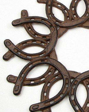 Cast Iron Horseshoe Wreath. Cast iron. 13"Wx13"Hx0.5"D