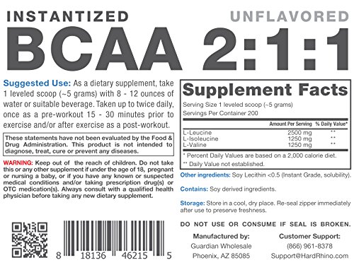 1 Kilogram (2.2 Lbs), BCAA 2:1:1 Instantized Powder with Scoop Included