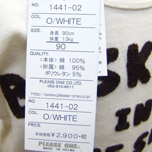 | 【ベビー服・子供服のプリーズワン】 ベビー・キッズからジュニアまで幅広いサイズを取り扱っております。 ポスター、ラスクをはじめ人気のスポーツブランドも取り扱っています。アウトレット 訳あり商品 季節セール 送料無料商品などお得なコーナーや入園入学準備 お祝い プレゼント カジュアル服 インポートなどの子供服が揃っています。 ●全国一律送料540円(税込) ●5,400円(税込)以上お買い上げで送料無料! ●メール便 164円(A4サイズ厚さ2cmまで) 82円(厚さ1cmまで) 【取扱いサイズ】 60cm/70cm/80cm/90cm/95cm/100cm/110cm/120cm/130cm/140cm/150cm/160cm 10cm/11cm/12cm/13cm/14cm/15cm/16cm/17cm/18cm/19cm/20cm/21cm/22cm/23cm XXS/XS/S/M/L/XL US:2T/3T/4/5/6/7/8/10 大人サイズ アダルトサイズも取り扱っています。 |