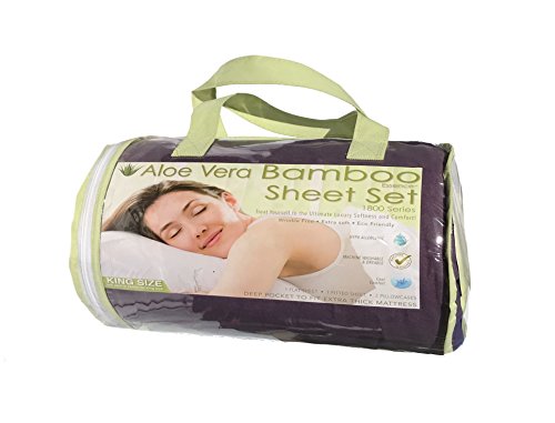 Bamboo Essence 1800 Series- Eco Friendly, Hypoallergenic, Extra Soft-Wrinkle-Free, Deep Pocket 4-Piece Sheet Set-Solid Color (Purple, King/Cal King)