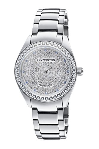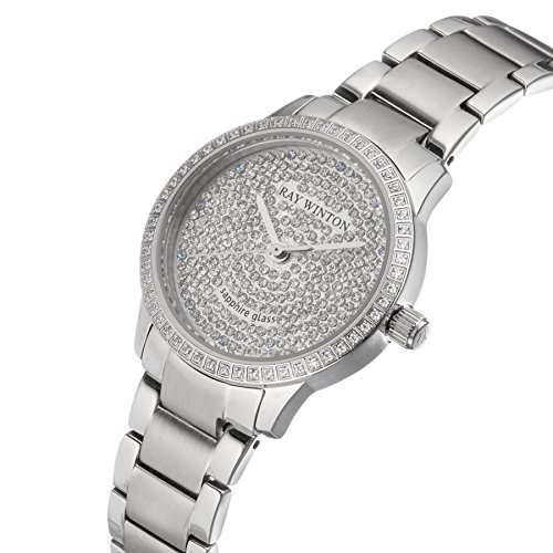 Ray Winton Women's Blue Sapphire Crystal Diamond Dial Silver Stainless Steel Bracelet Watch