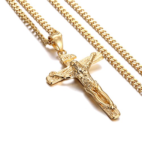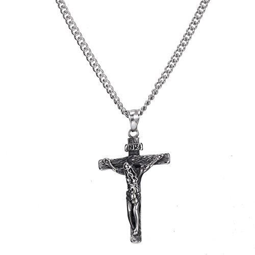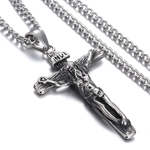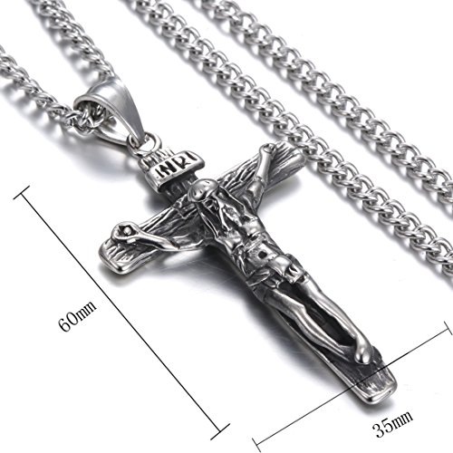 -. Title : Cross Necklace, Heraculs Stainless Steel Jesus Christ Cross Crucifix Pendant for Mens Womens 24 inches