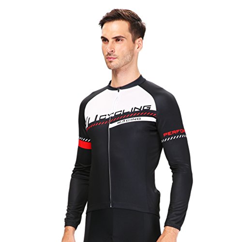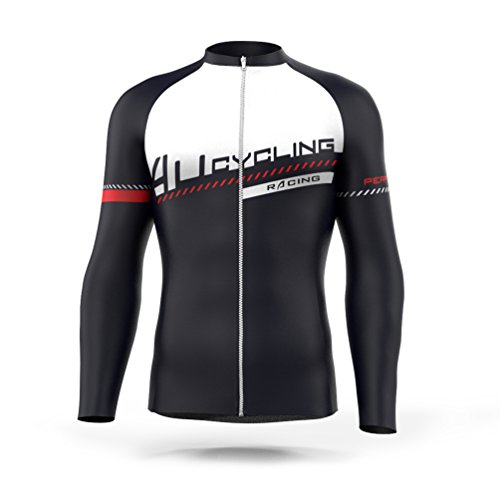 4ucycling Men's Team Wear Cycling Jersey Long Sleeve Black-White long sleeve cycling jersey