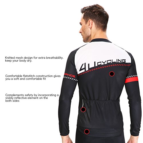4ucycling Men's Team Wear Cycling Jersey bike shirt Long Sleeve full zip biking jacket 3 back pocket quick dry
