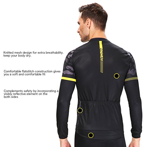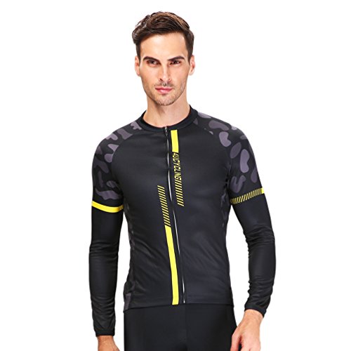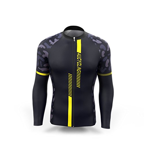4ucycling Men's Team Wear Cycling Jersey Long Sleeve Black-Yellow long sleeve cycling jersey
