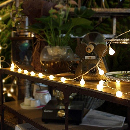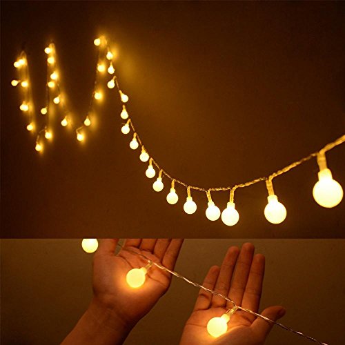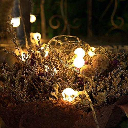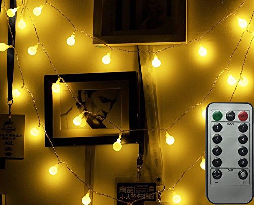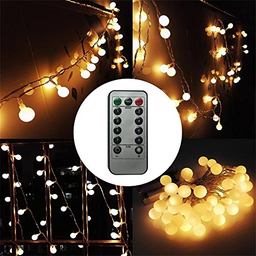 -. Feature : 5m/16ft Battery powered Globe LED String Lights can be used Outdoor and Indoor without any trailing cables or an external power supply. The diameter of each globe ball is 0.7 inch.Ther are 4 inch long between each ball. / 8 Lighting Modes Remote Control, Brightness adjustable, Timing Function(cycle 6 hours on 18 hours off) / Dimmable: Press DIM- or press DIM+ of remote control to adjust the brightness of the lights / Ideal for Garden, living room, dining room, bedroom, wedding, party, Valentine's day, Halloween, Christmas, etc / Powered by 3 AA batteries(NOT INCLUDE), Portable string light that can be used indoor/outdoor