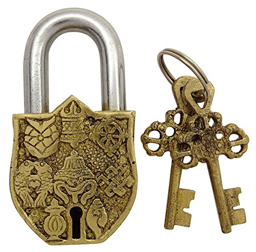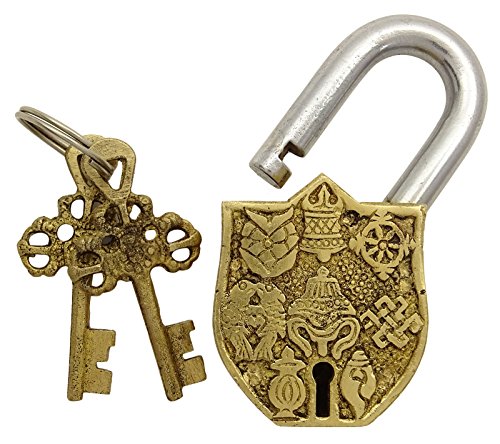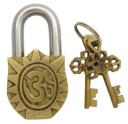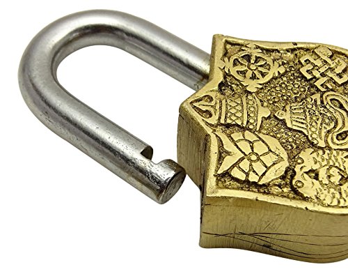 Brass Gold Tone Metal Home Decor Lord Vishnu Symbol Padlock Handmade Decorative Lock