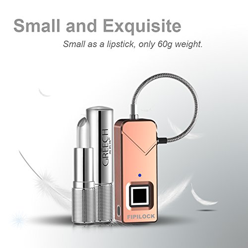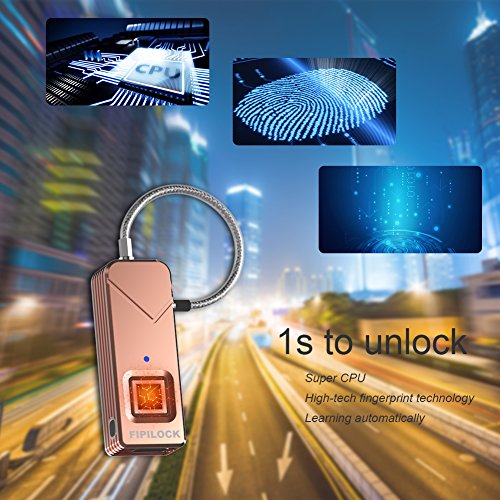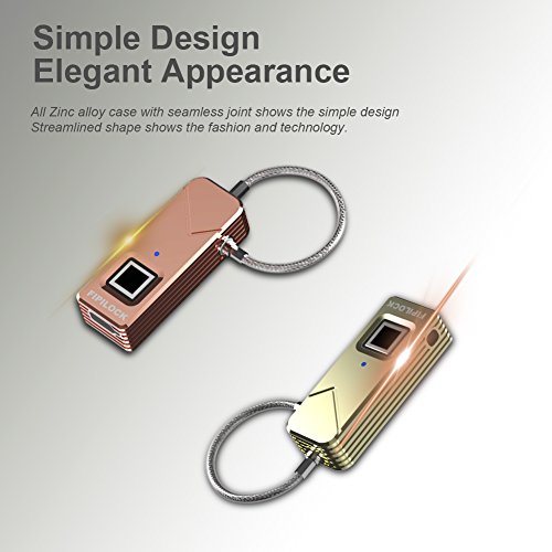 FipiLock Smart Fingerprint Padlock Waterproof with Alloy Zinc Case Your Finger Is Your Key RoseGold