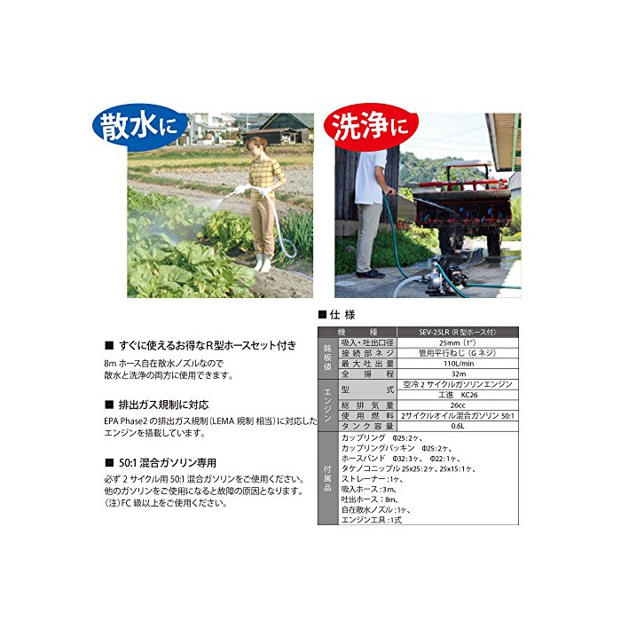 원본상품명: 工進 工進製 2サイクルエンジンポンプ+8m散水ホス付 SEV-25LR