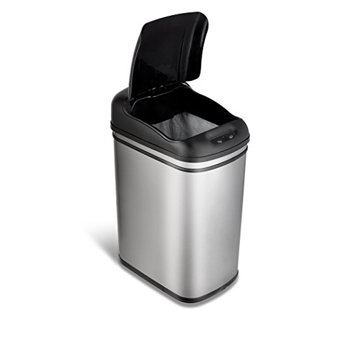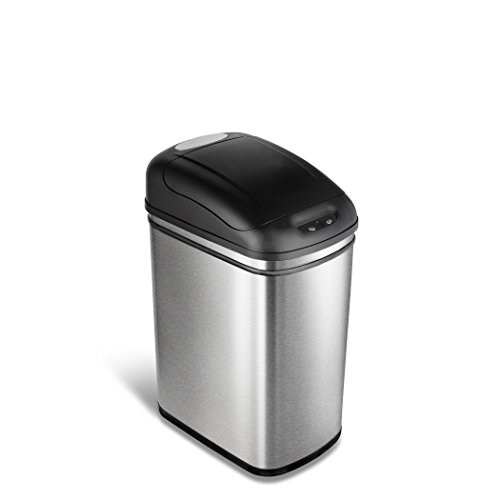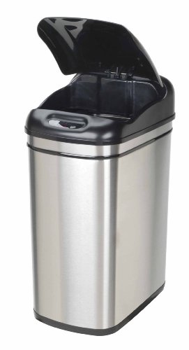 Studio : Nine Stars Publisher : Nine Stars Binding : Kitchen Product Description This 7.9-Gal stainless steel Touchless Trashcan is designed and engineered by Nine Stars the World's first legal patent holder. With its oval shape design, it can fit almost any area, such as kitchen, office, living room, in the laundry room, the bedroom, dorm room or any open space. This durable trashcan uses the most advance sensor technology can be found in all Nine Stars trashcans. As your hand or debris within ten inches and 130-degree angle from the infrared sensor, the lid will automatically opens. The lid will remain open if debris or hand remains within the range of the infrared sensor. Three seconds after your hand moves away from the lid, it closes automatically. Power lasts up to 6 months in normal daily usage. Required four D-size batteries (not included). Includes a garbage bag ring to keeps the bag hidden from public view for a neat and clean appearance. 0