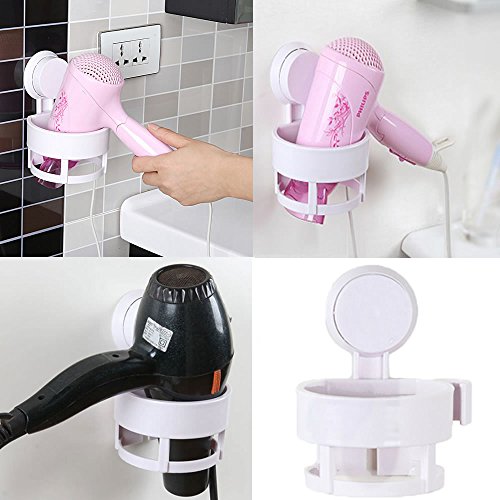 IDS Hair Dryer Holder Suction Cup Wall Mounted, White