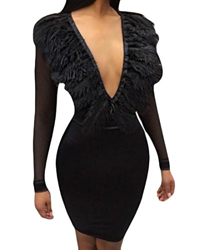 -. Title : Tootess 女性のセクシーなタッセル固体の低い切られた深いv -スリムショートドレス