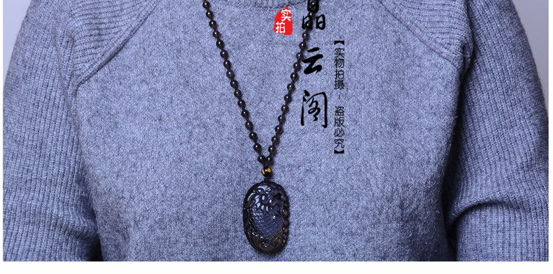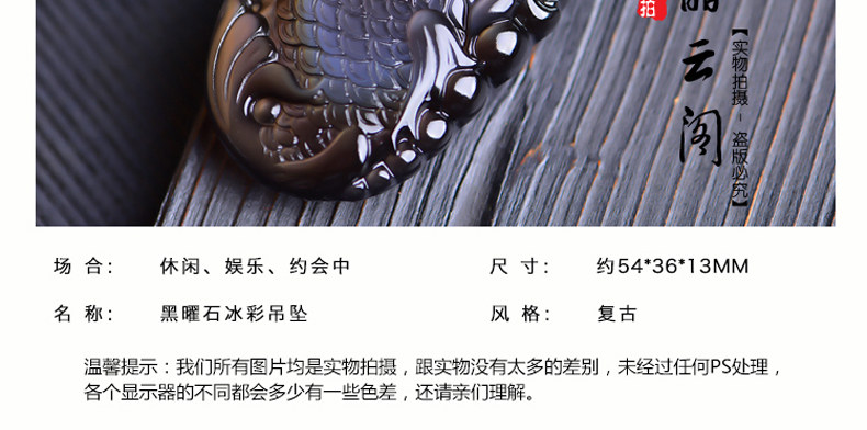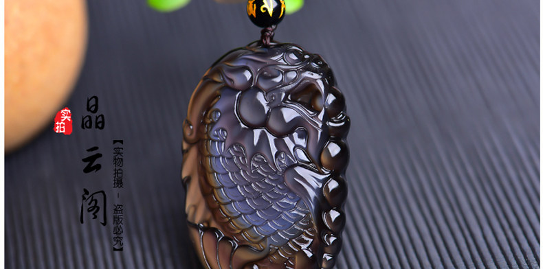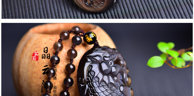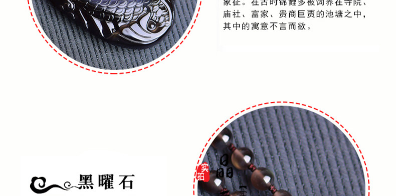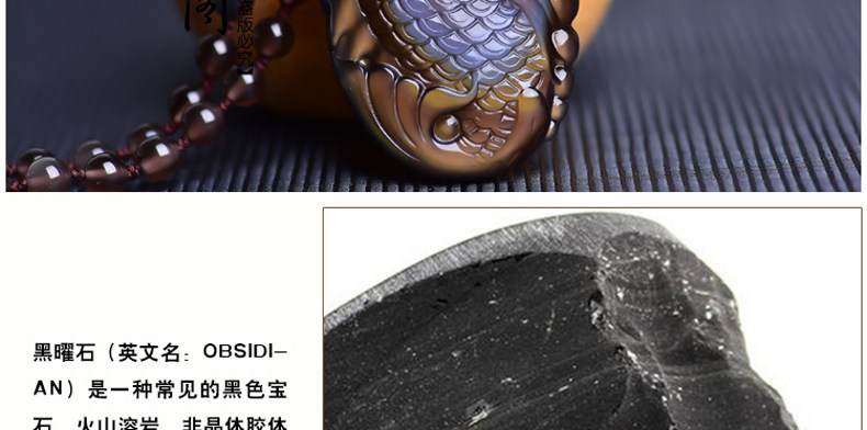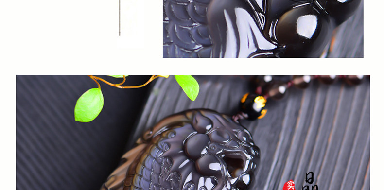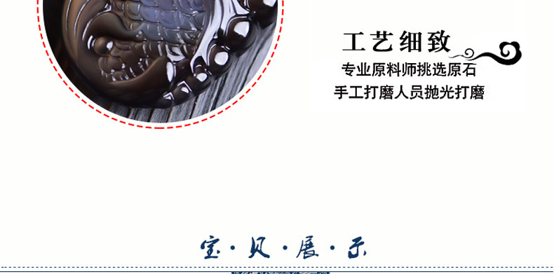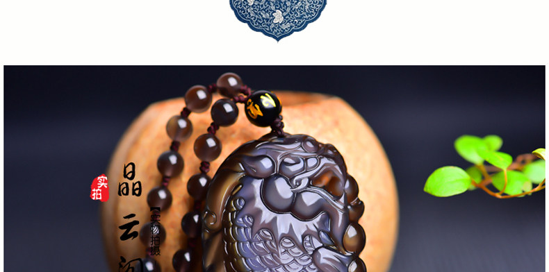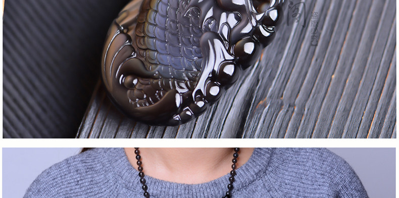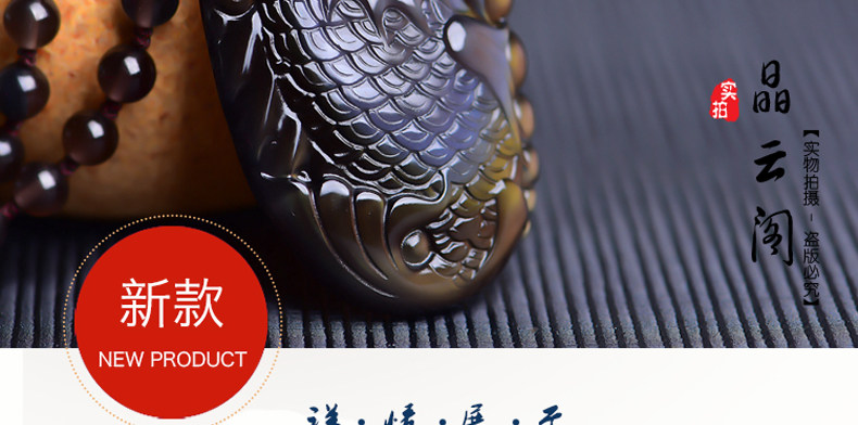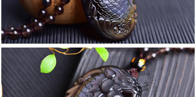 开光天然彩虹眼黑曜石灵鳌夺魁 锦鲤联珠生肖吉祥物吊坠挂件
